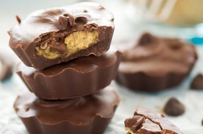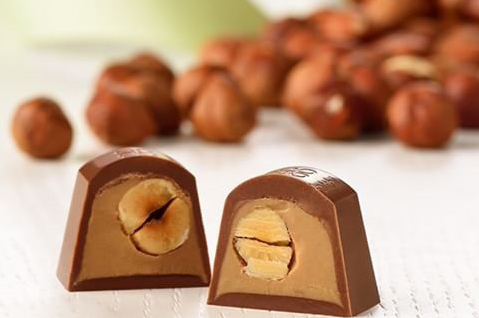 (Filling of hazelnut butter enhance flavor of milk chocolate.)