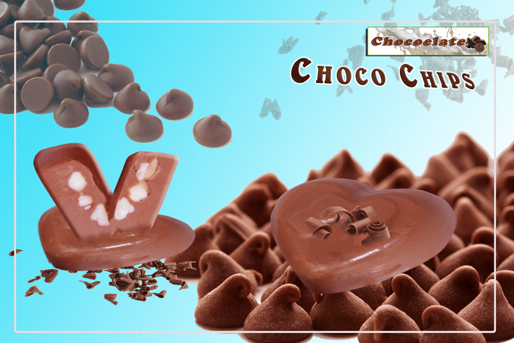 (A bite gives pleasure of milk chocolate, white Choco chips.)